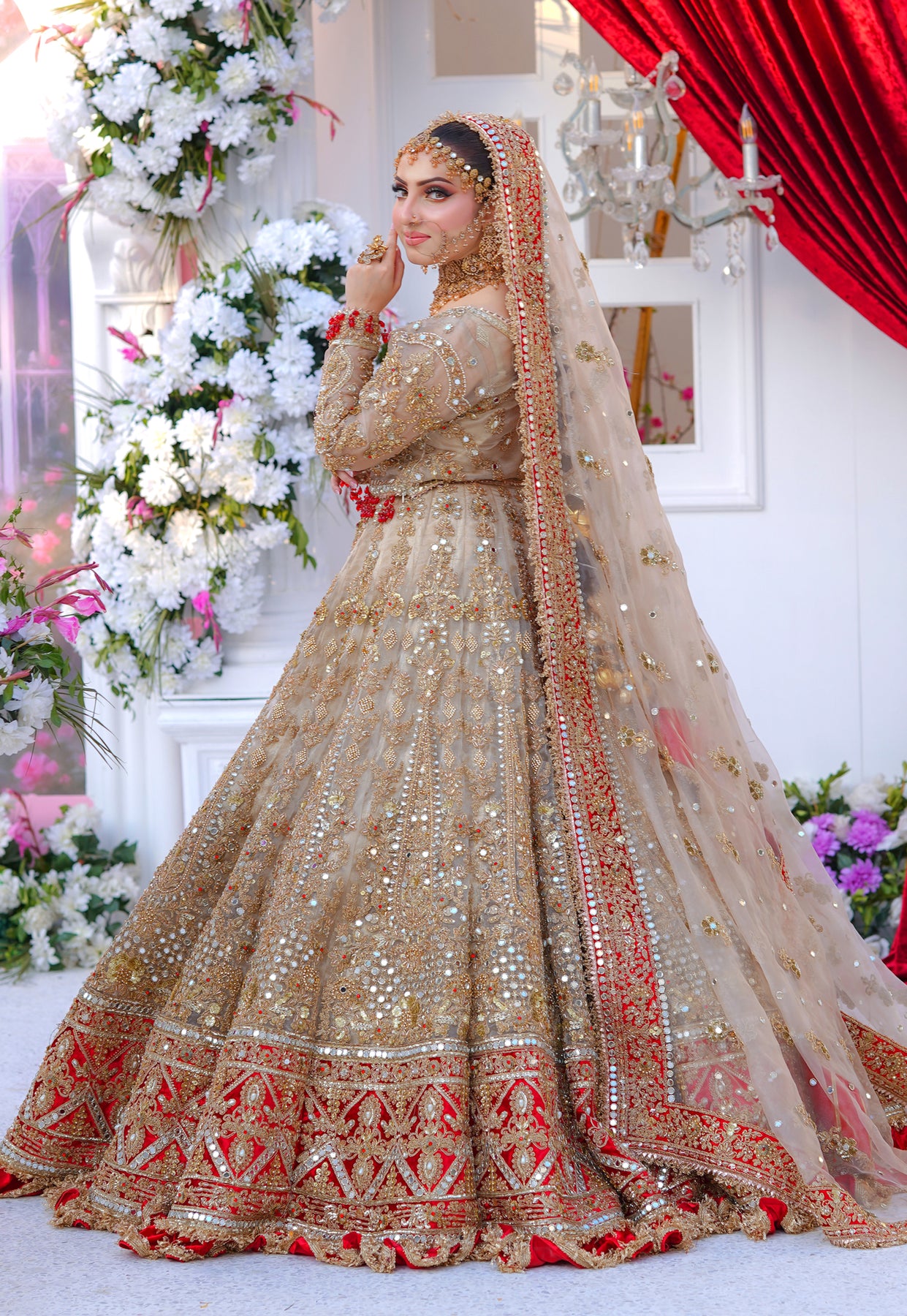 Crafted inside the artistic world of Kashee’s Bridal Couture, KBW-079 brings to life the poetry of a bride’s heart — the quiet excitement, the unspoken promises, and the timeless elegance she carries on the most sacred day of her life.