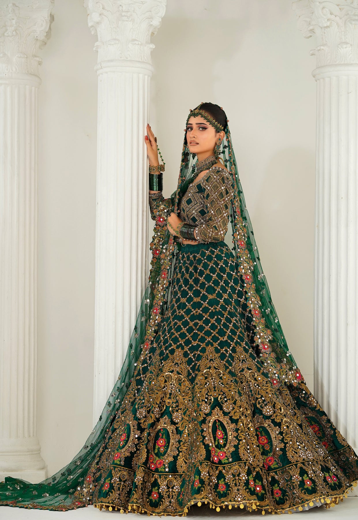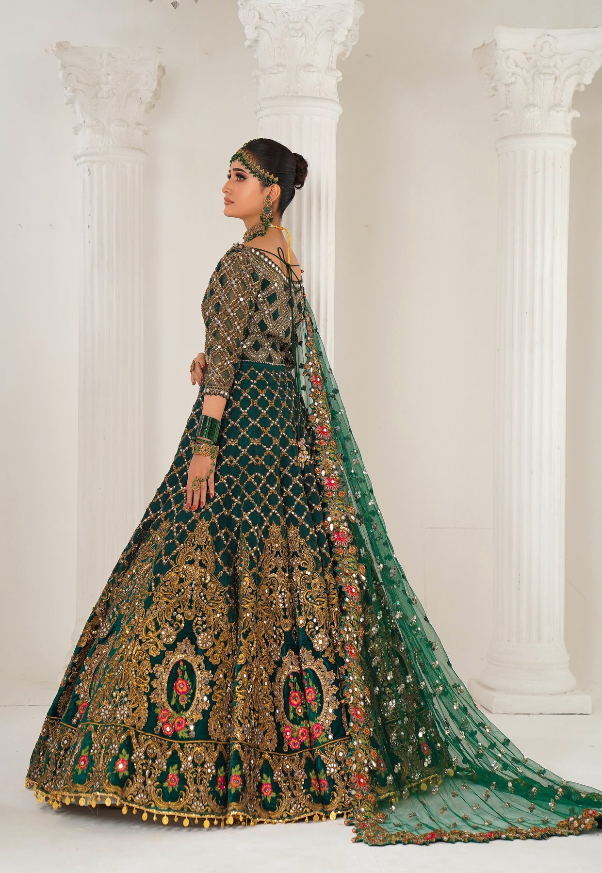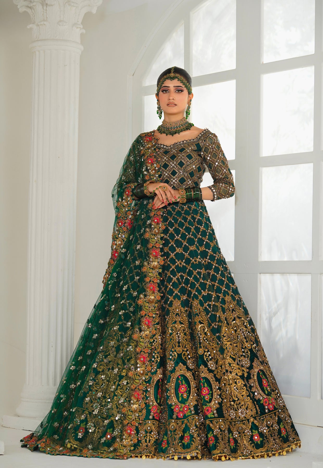 ·         Colour: Emerald Green with rich gold and multicolour embroidery