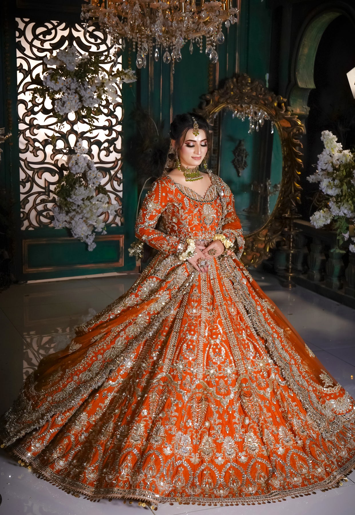 Crafted from premium organza and chiffon fabric, it flows gracefully with every movement, reflecting elegance and grandeur. Perfect for brides and festive occasions, this exquisite design celebrates femininity, grace, and the signature royal artistry of Kashee’s.
